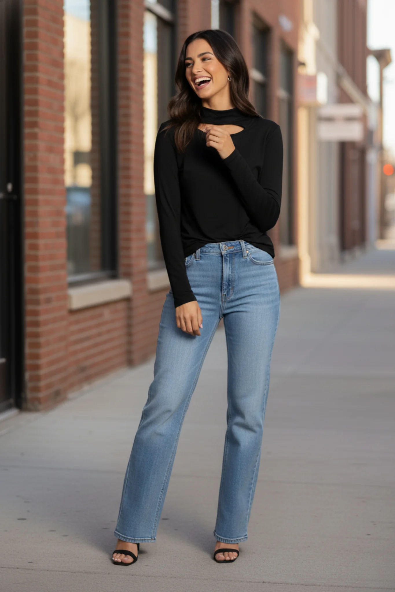 The Glam Top features a mock neck and modest cutout in our ultra-soft jersey fabric that can feel like a fresh makeover when wearing out on a date or meeting up with girlfriends.